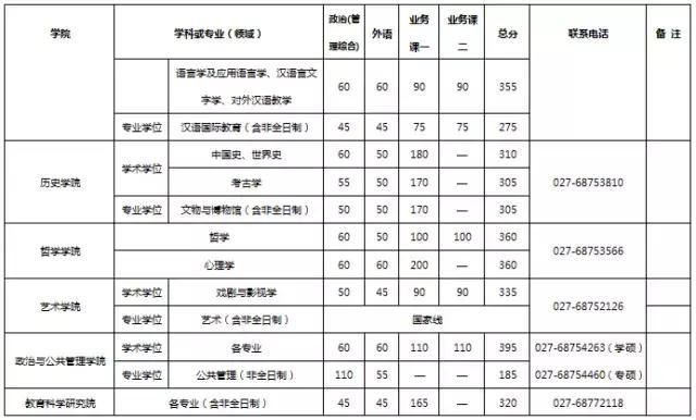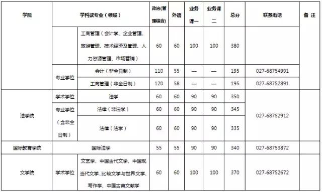 武汉大学2017年考研分数线